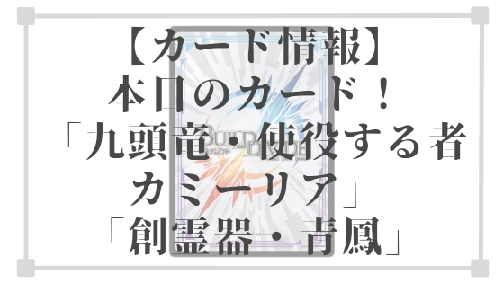 カード 本日紹介のカード 九頭竜・使役する者 カミーリアテリトリーカード創霊器・青鳳 2022年4月30日 Ku http://build-divide-fansnabi.com/wp-content/uploads/2021/11/20211129_235859_00007438723702217780165.png ビルディバイド ファンズナビ