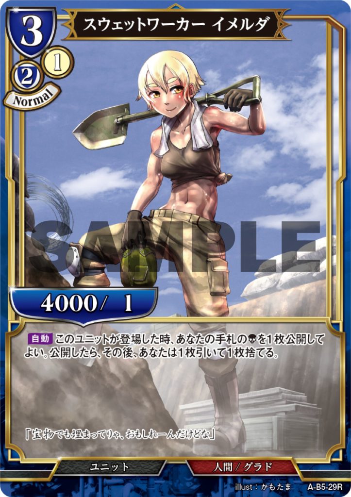 スウェットワーカー イメルダはトレカ【BOX】ビルディバイドTCG ブースターパックVol.5 蒼き鳥は飛翔し、黒き豹は咆哮すに収録!
