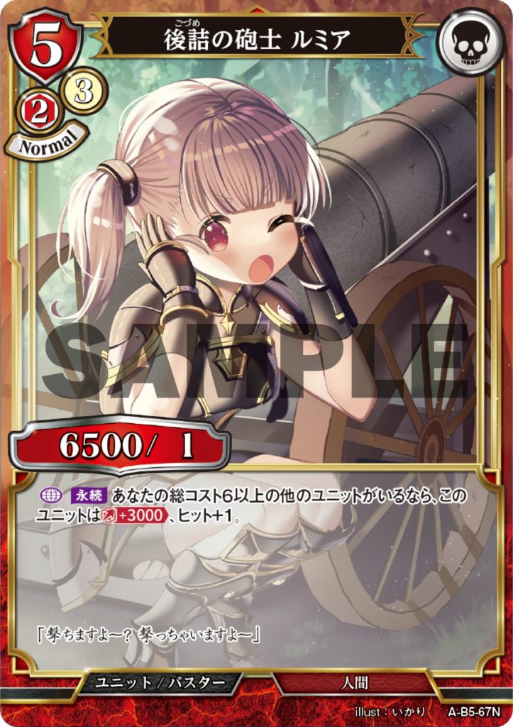 後詰の砲士 ルミアはトレカ【BOX】ビルディバイドTCG ブースターパックVol.5 蒼き鳥は飛翔し、黒き豹は咆哮すに収録!